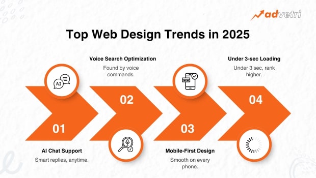 Voice Search: People are using voice commands to find businesses. Your website needs to be ready for questions like “web design services near me.”